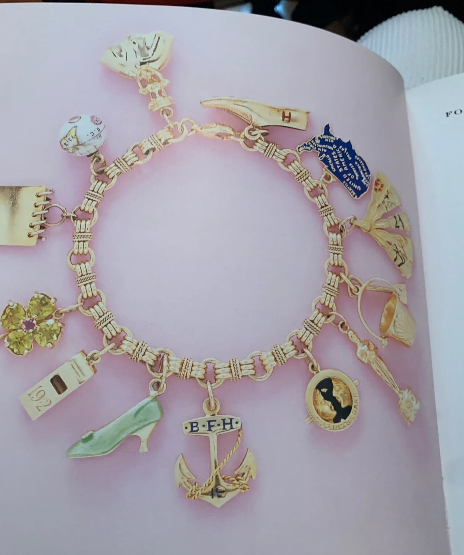 5. Charms. I had the most wonderful charm bracelet for a long time. Here’s a photo. It disappeared more than 10 years ago, and I am heartbroken. But, charms are such a wonderful memento of one’s personal history. I made one for each of my female exhibits ™ as well. I still collect them intermittently, now to hang them around my neck on a chain. Each one tells a story.